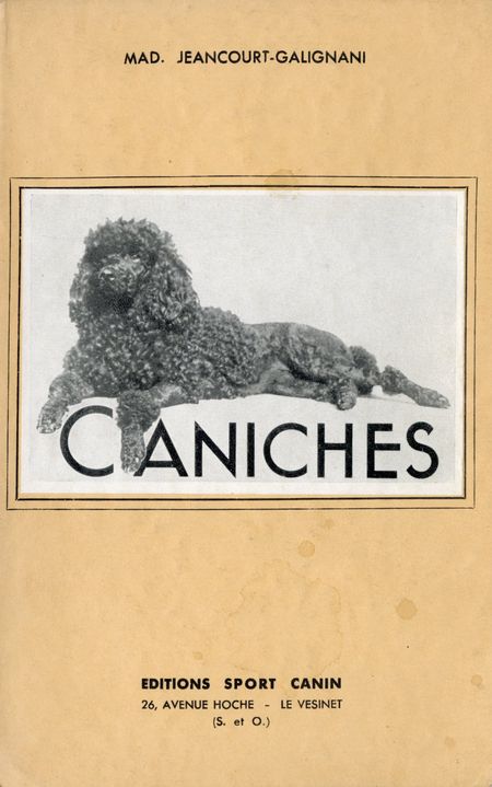 L'autrice a cotoyé des caniches dès son enfance puis a développé un chenil de renom où s'est distingué entre autres le caniche Footit Madjigé. Son ouvrage traite de nombreux aspects sur le caniche : son origine, son caractère, son rôle dans l'histoire ou dans la société, sa place dans l'art. Ouvrage sérieux et plaisant à la fois, marqué d'une expérience vive et dynamique. Le standard, à l'élaboration duquel Mad. Jeancourt-Galignani a participé, est décrit (pp. 75-84) puis commenté (pp. 85-91). Suit un tableau des mensurations de quelques champions internationaux et une liste des caniches champions de France de 1922 à 1937. En début d'ouvrage, le capitaine Tolet trace un historique de ce chien essentiellement français, en y incluant l'histoire de caniches célèbres et certains souvenirs personnels.