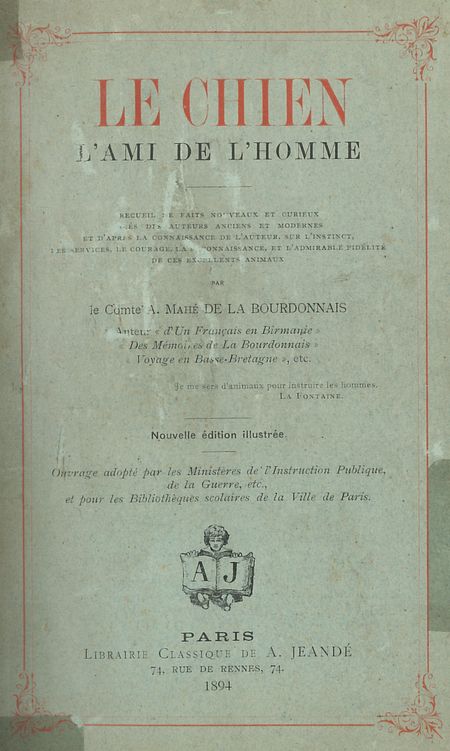 Le chien : l'ami de l'homme : l'instinct, les services, le courage, la reconnaissance et l'admirable fidélité de ces excellents animaux